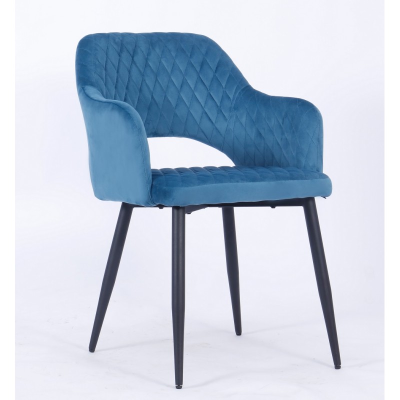 SILLÓN DE ARMAZÓN METÁLICO CON ACABADO EPOXI NEGRO, ASIENTO Y RESPALDO TAPIZADOS EN VELVET 62 TURQUESA DARK